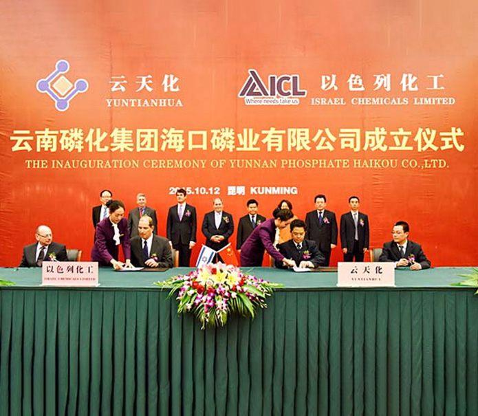 2015年10月12日,云天化集團和以色列化工集團的合資合作項目——云南磷化集團??诹讟I(yè)有限公司在昆明海埂花園酒店舉行成立儀式。