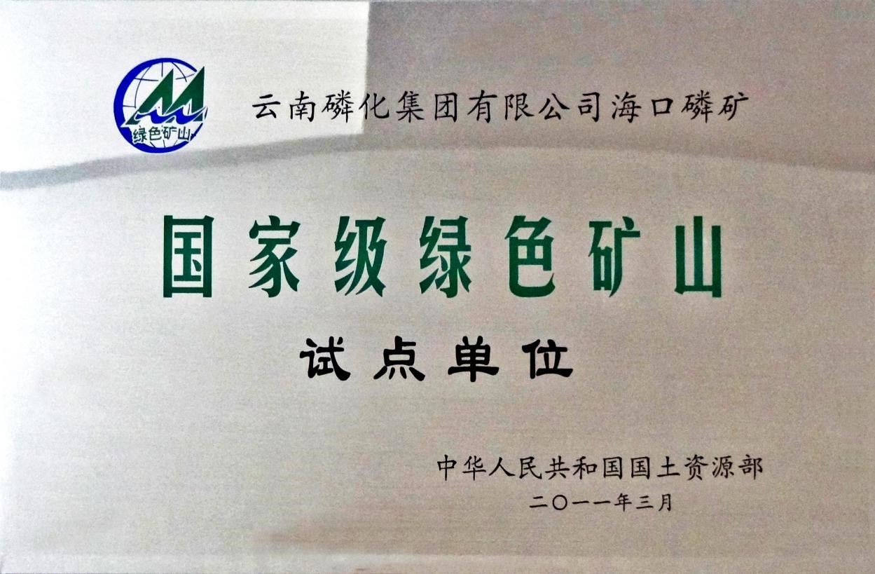 礦山堅持綠色發(fā)展理念,推進(jìn)綠色礦山建設(shè),著力構(gòu)建資源節(jié)約型、安全環(huán)保型、礦地和諧型企業(yè),在依法辦礦、規(guī)范管理、綜合利用、技術(shù)創(chuàng)新、節(jié)能減排、環(huán)境保護(hù)、土地復(fù)墾、社會和諧、企業(yè)文化建設(shè)等方面取得顯著成效,實現(xiàn)了礦山的可持續(xù)發(fā)展,2010年,成為國家“綠色礦山公約”成員單位,首批“國家級綠色礦山試點單位”。