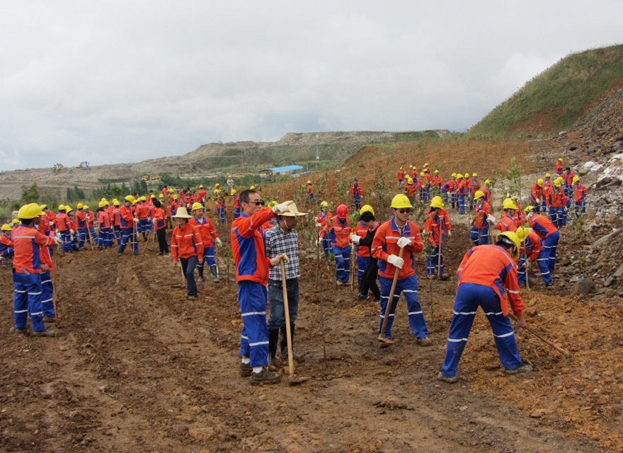 露天礦山開采與礦區(qū)周邊的地方關(guān)系密切。公司以和諧礦山的新理念、新思路,履行社會責(zé)任,正確處理好礦業(yè)發(fā)展與地方經(jīng)濟(jì)發(fā)展關(guān)系,推行“云南磷化集團(tuán)—漢營”企地和諧發(fā)展模式,主動回報社會,充分利用周邊農(nóng)村勞動力,參與采空區(qū)復(fù)墾植被工作,企地和諧,共同發(fā)展。