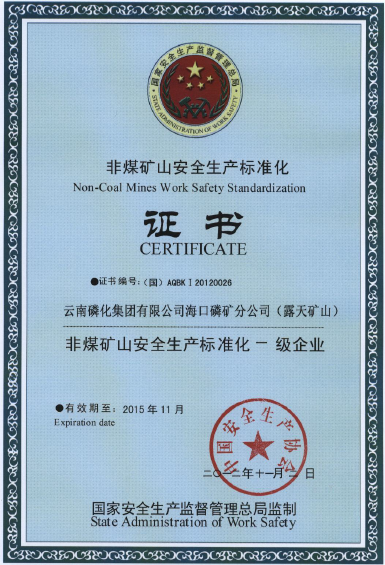 近年來,??诹椎V通過強(qiáng)化管理,先后通過了國家IS9001-2000質(zhì)量管理體系、IS14001-2004環(huán)境管理體系和GB/T28001-1999職業(yè)健康安全管理體系認(rèn)證、“金屬非金屬礦山安全標(biāo)準(zhǔn)化一級企業(yè)”驗(yàn)收及“清潔生產(chǎn)”合格單位的升級驗(yàn)收。2011年5月被批準(zhǔn)為國家“綠色礦山公約”成員單位,成為首批國家級“綠色礦山”。